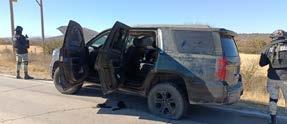 En la camioneta, el personal encontró una granada para aditamento de calibre .40 mm, ocho cargadores para arma larga abastecidos, así como un número no contabilizado de cartuchos, un casco de kevlar y dos chalecos antibalas de color negro.