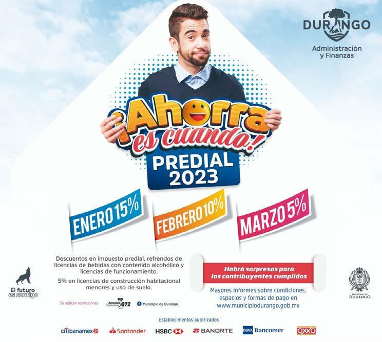 recargos, y 20% en gastos de ejecución al pagar de contado; 8% en convenio, todo en apoyo a la economía de las familias.