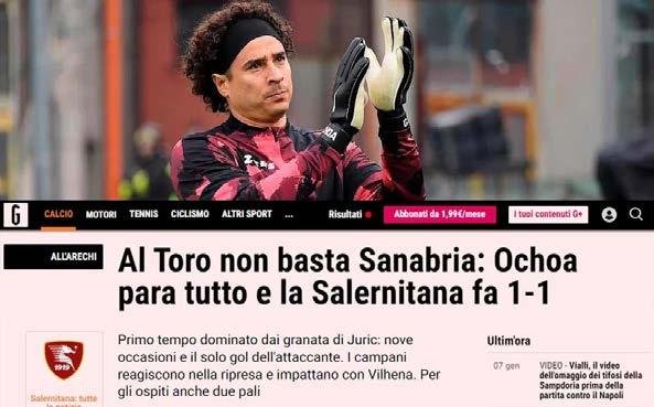 la Gazzetta dello Sport con su encabezado: “Ochoa detuvo todo”, para más adelante destacar: “Gracias a un súper Ochoa, el equipo de Davide Nicola saca un punto importantísimo para seguir sumando pensando en alejarse de la quema”.