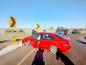 Durango, Dgo.- Este jueves se registró un accidente de tránsito en el distribuidor vial que une al periférico de Durango con la carretera a Zacatecas; el hecho ocurrió, de nuevo, al tomar con exceso de velocidad una de sus salidas. Los afectados son integrantes de una familia zacatecana que, de acuerdo a su relato, regresaban del Aeropuerto Internacional Guadalupe Victoria y tomaban camino a su entidad de origen. Al llegar al distribuidor, el conductor del Volkswagen Vento siniestrado, Carlos Eduardo Hernández Ureña, de 35 años, tomó demasiado rápido la salida con más accidentes de la zona y, como ha pasado en varias ocasiones, se impactó con la guarnición.