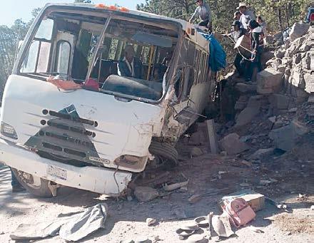 pasajeros perteneciente a la comunidad de San Bernardino de Milpillas Chico, que salió hacia dicha región en el amanecer de este jueves. Fue cerca de la localidad de Las Bayas donde el chofer perdió el control y sobrevino una colisión contra un talud de piedras, en la que varias personas resultaron lesionadas.