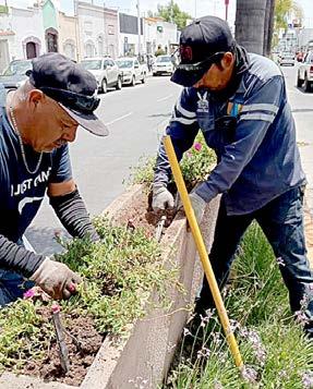 Trabajadores de Áreas Verdes de Servicios Públicos Municipales colocan plantas de ornato en maceteros de la avenida 20 de Noviembre, con el fin de darle una nueva imagen a una de las calles más transitadas por los duranguenses.