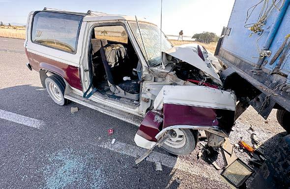 Santa Clara, Dgo.- Tres inte grantes de una familia resultaron con golpes leves pese a lo aparato so del percance en el que su auto móvil resultó en pérdida total; el