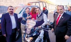al entregar dos patrullas y tres motocicletas a la Dirección Mu nicipal de Seguridad Pública, lo que forma parte del proyecto de equipar las instituciones de todo el estado.