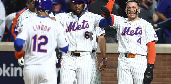 porada. Hay que subrayar que fue efectivo en el rubro de estafas, pues concretó los 15 intentos. Los Mets cerraron la temporada con 106 almohadillas robadas en 128 intentos (82.8 por ciento de efectividad), la segunda mejor marca en la historia de la franquicia. Nimmo además fue un arma peligrosa en los juegos como visitante: pues disparó 14 dobles, un triple, 12 cuadrangulares y produjo 39 carreras en 74 juegos en gira, con .241 de promedio. En lo que va de la postemporada, batea para .269, con un vuelacercas y cuatro producidas. Pete Alonso, emblema del equipo, no tuvo su mejor temporada; sin embargo, nuevamente demostró rentabilidad y estuvo presente en los 162 juegos del calendario. Venía de dos temporadas consecutivas de al menos 40 jonrones y 100 producidas, esta vez se quedó en 34 vuelacercas y