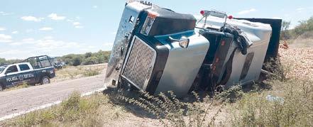 el control por completo. La unidad acabó fuera del camino, sobre uno de sus costados y con el cargamento fuera; por fortuna, el chofer solo sufrió golpes leves que no ameritaron atención médica. La parte afectada fue auxiliada por personal tanto de la Policía Estatal como de la Policía Municipal, que notificaron lo sucedido a la Guardia Nacional para los procedimientos correspondientes.