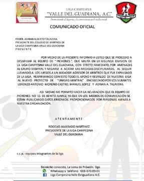 La Liga Campesina Valle del Guadiana indicó que la oncena de los Pichones no jugará más en este circuito futbolero