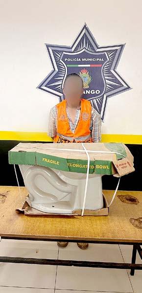 Durango, Dgo.- Elementos de la Policía Municipal detuvieron a un sujeto que acababa de robar un inodoro nuevo de una finca en construcción; el tipo podría estar ligado a una serie de robos reportados en los alrededores del poblado Sebastián Lerdo de Tejada y el fraccionamiento Las Villas. Se trata de Luis Donaldo “N”, de 29 años de edad, cuyo aseguramiento fue realizado por elementos de la Policía Municipal que realizaban un operativo de prevención en las inmediaciones del periférico de la ciudad.