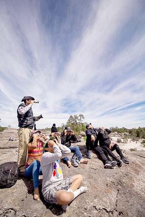 y mucho desierto, y llegando aquí a estos hermosos bosques, realmente queda uno impresionado, yo me dedico a la divulgación de la astronomía y este eclipse lo tenía esperando desde 1991, cuando me di cuenta que aquí iba a ser uno de los lugares centrales y aquí ya había pasado una noche de observación hermosa, dije: aquí va a ser mi lugar de observación, porque es un lugar precioso y tiene unos cielos hermosos, anoche salimos a ver el cielo y las constelaciones se veían preciosas; me acompaña mi familia, mi hermano y mi cuñada, mi esposa y mis hijos”, comentó Sergio Rolando Quezada, procedente de Aguascalientes.