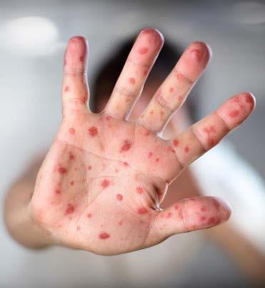 Los síntomas que presentan las personas infectadas son: Dolor de cabeza intenso Fiebre de 39°C Erupciones cutáneas