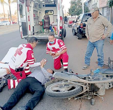 en la colonia Hipódromo. El percance ocurrió justo en el cruce de las calles Prolongación Pino Suárez y María Bayona, lugar en el que un automovilista invadió carril al conductor de la moto, que no pudo evitar el impacto. El muchacho del vehículo más frágil cayó aparatosamente, mientras que el otro involucra-