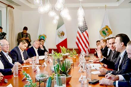 gobernadores; con Roger Rigaud, cónsul general de los Estados Unidos en la ciudad de Monterrey, Nuevo León; así como con autoridades del Instituto Nacional de Migración (INM) y del Grupo México Transportes (Ferromex) encabezados por Fernando López Guerra, director general. Entre los principales temas abordados están: nearshoring y la llegada de más de 31 empresas internacionales a Durango, gracias a una estrategia de promoción y gestión. El modelo de seguridad que se tiene en La Laguna y en el que convergen los tres niveles de gobierno bajo la coordinación