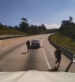 “Bájate rápido guey, bájate, vete al carro de allá”, le gritan los delincuentes, y después se puede ver cuando el conductor es llevado por la fuerza para subirse al auto sedán, mientras que otro de los sujetos se encarga de destruir la cámara.? Cabe señalar que este tipo de atracos se han vuelto comunes en distintos puntos de la autopista México-Puebla-Xalapa con diferentes modus operandi.