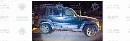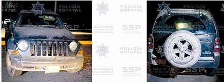 Se trata de una camioneta Jeep Liberty Renegade modelo 2015, cuyo hallazgo se realizó en la cabecera de dicha demarcación, Tayoltita. Según el reporte de los o ciales, la tuvieron a la vista siendo conducida a exceso de velocidad, por lo que fueron tras ella.
