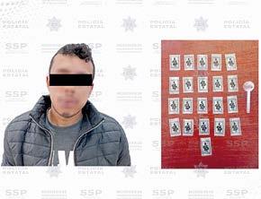 El detenido es Héctor “N” de 25 años de edad, a quien los o ciales le aseguraron 21 raciones de metanfetamina, que aparentemente portaba con nes de comercialización.