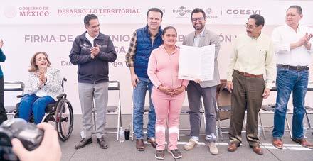 En esta entrega de títulos de propiedad también estuvieron presentes Yolanda de la Torre Valdez, presidenta magistrada del Tribunal Superior de Justicia del Estado de Durango, Francisco Santillán de la Torre, director de o cina de representación de la Sedatu en Durango, y Crisantos Cebreros Favela, representante regional del INSUS en el estado de Durango.