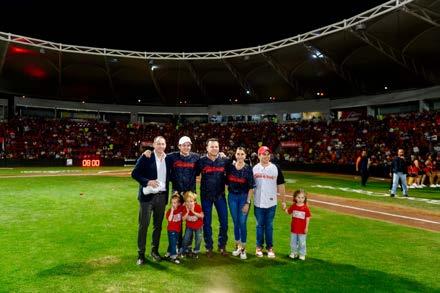 El lanzamiento de la primera bola estuvo a cargo del presidente de Grupo Caliente, Emilio Hank, añadiendo un toque de emoción y prestigio al evento. Además, por primera vez, la afición duranguense tuvo la oportunidad de conocer uno a uno a los jugadores que forman parte del conjunto Caliente de Durango esta temporada, aumentando aún más la conexión entre el equipo y su comunidad.