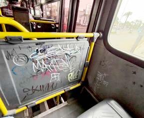 No solo inmuebles del primer cuadro o la periferia son víctimas del grafiti, también las unidades de transporte público lucen decoradas por estas pintas, las cuales dan mala imagen y causan un gasto a los concesionarios.