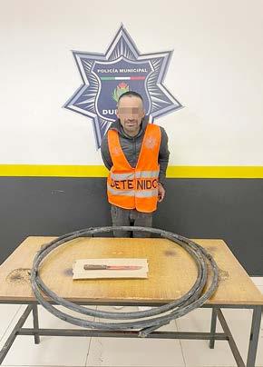 6 metros del referido material, además del cuchillo que utilizó para realizar el corte. “El Coruco” fue detenido formalmente y entregado a la Fiscalía General del Estado para los procedimientos que marca la ley. No se descarta un probable vínculo con otros atracos de este tipo ocurridos en la misma zona, pues han sido varios y él vive en la colonia donde se realizó la detención.