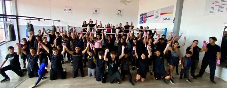 El gimnasio de Box del IED se convirtió en el escenario principal de esta emotiva actividad, donde el color rosa en los vendajes predominó, simbolizando la unión y la fuerza en la lucha contra esta enfermedad. Al finalizar la clase, se llevaron a cabo breves intervenciones, destacando la relevancia de la prevención y el apoyo a quienes enfrentan esta dura batalla.