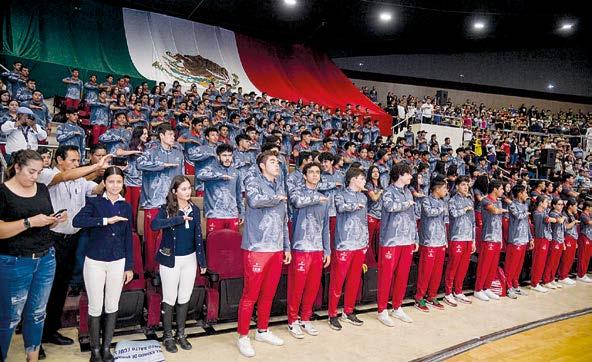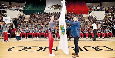 El secretario general de Gobierno Héctor Vela Valenzuela hizo entrega de la bandera con el escudo de armas del estado de Durango a la destacada voleibolista mundialista Michelle Alejandra Lizárraga González, quien tomó protesta a nombre de sus compañeros deportistas, mientras que el fondista Angel Antonio Torres, realizó el juramento deportivo.