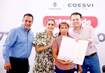 “Les damos certeza jurídica, porque las familias duranguenses merecen tener un patrimonio digno”, expresó el gobernador Esteban Villegas Villarreal al entregar, junto a su esposa Marisol Rosso Rivera, 271 títulos de propiedad para viviendas de varias colonias de la capital.