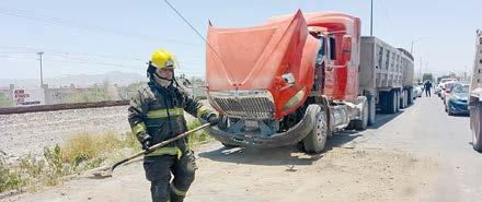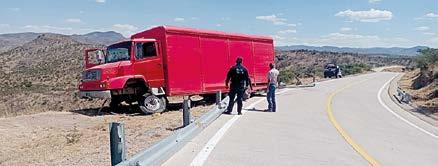propiedad de la empresa Coca Cola. Según lo relatado a las autoridades, fue en el kilómetro 15 del tramo El Oro-Guanaceví donde el mayor de los afectados perdió el control de la unidad a causa de una falla en el sistema de dirección. Eso provocó, en una curva, que se fueran directo contra la valla de contención. Ante lo pesado del tractocamión Mercedes Benz, este superó parcialmente la estructura metálica y quedó con