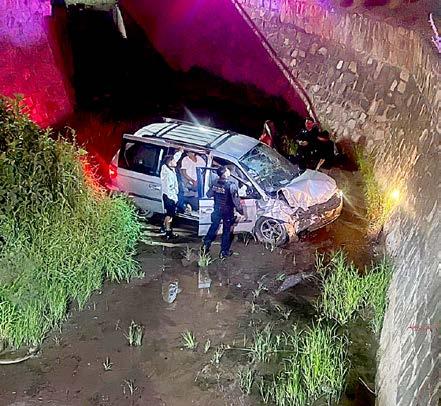 ferida vialidad, y Eliut perdió el control cerca del cruce con la avenida Estaño, lo que provocó que saliera del camino. La camioneta acabó al fondo del profundo canal, por fortuna sin que volcara, lo que contuvo las posibles afectaciones físicas. Al final nadie fue hospitalizado y todo quedó en daños materiales.