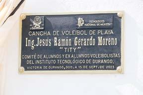 Integrantes del Comité de Alumnos y Exalumnos Voleibolistas del Instituto Tecnológico de Durango realizaron un homenaje a la trayectoria del ingeniero Jesús Ramón Gerardo Moreno “Tity”, con la develación de la placa de la Cancha de Voleibol de Playa de la institución que ahora lleva su nombre.