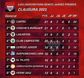 Suspensiones Lara le ganó 2-0 a Computación Superior; el FerreDíaz se impuso 2-1 a los Diablos de la UJED; finalmente, el ISEDSA obtuvo los 3 puntos al vencer 3-2 al Deportivo Gálvez. Esto fue lo que dejó la jornada 9 de fase regular. Este día se llevará a cabo la junta de cada semana entre directiva de la liga y representantes de los equipos, donde se resolverán las protestas que hayan surgido y se rolará la jornada siguiente.