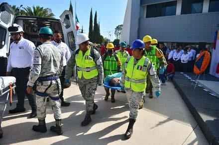 Con la participación de 800 personas se llevó a cabo el simulacro con hipótesis de incendio en las instalaciones de la Secretaría de Educación, con la participación de elementos de la Guardia Nacional, la Sedena, Protección Civil municipal y estatal, Cona-