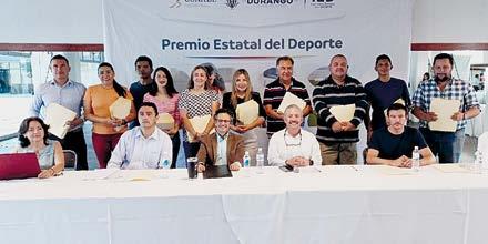 Estatal del Deporte se encuen tran Iván Sánchez Hernández, director del Instituto Municipal del Deporte de Gómez Palacio, Roberto Lozano Valenzuela, pre sidente del Club Guadiana Du rango y Liliana Juárez Rodríguez, directora del Instituto Municipal del Deporte de Durango.