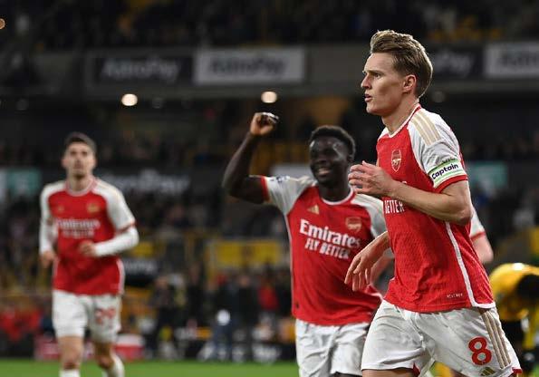 Miraba Mikel Arteta el panorama con preocupación. Dio entrada a omas por Gabriel Jesús, observó cómo Wolverhampton amagaba en torno a su área, dispuso de una ocasión de Gabriel Martinelli y sólo se sintió ganador con el 0-2 en el minuto 94 de Odegaard. Le quedan Chelsea, Tottenham, Bournemouth, Manchester United y Everton. Y necesita un tropiezo del City.