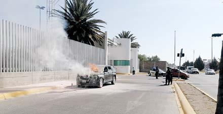 Durango, Dgo.- La reacción de civiles y policías, así como la pronta llegada de elementos del Cuerpo de Bomberos, permitieron rescatar parcialmente una camioneta que comenzó a incendiarse frente al Hospital General 450.