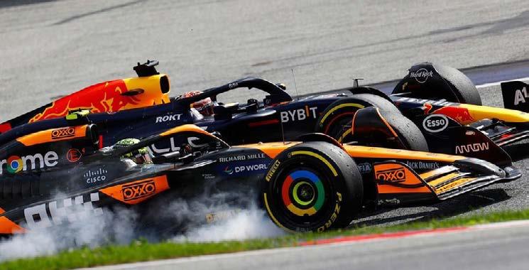 Se dice que una cosa es alcanzar y otra, muy distinta pasar, giro tras giro Lando enseñó el auto a Max, quien se hacía tan ancho como podía, una defensa heroica y con un suso de la batería casi perfecto para contrarrestar el DRS del McLaren.
