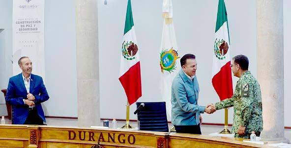 cuestros y que los delitos de robo van a la baja. Allí recalcó que no se bajará la guardia, sino que se reforzarán las estrategias para que el estado continúe en armonía y se garantice un ambiente seguro y pacífico para los ciudadanos. En esta reunión también estuvieron presentes la Fiscal de Durango, Sonia Yadira de la Garza; el General de Brigada Diplomado del Estado Mayor, Isaac Bravo