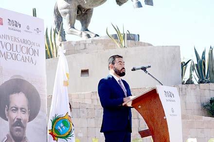solo buscó el cambio político, sino que también se enfrentó a la desigualdad que genera pobreza, dignificando al pueblo y su esfuerzo”, señaló Herrera Núñez. A lo largo de su discurso, también destacó el papel fundamental de Durango en el movimiento revolucionario, recordando que la lucha nació en los pueblos y comunidades del estado, de donde emergió el liderazgo del Centauro del Norte, símbolo de valor y resistencia en la lucha por un México más justo.