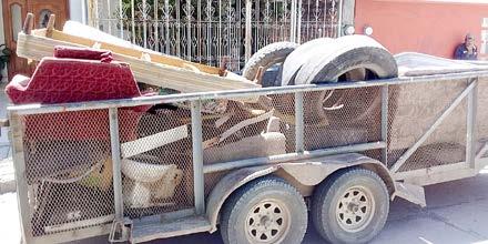 rros, entre los que se encuentran llantas, muebles, fierro viejo y electrodomésticos. El funcionario municipal detalló que, adicional a estas 18 toneladas, se han podido retirar mil 500 neumáticos, por lo que hizo el llamado a la ciudadanía a que llame a Servicios Públicos Municipales para que una cuadrilla especial acuda a sus domicilios y así las llantas no terminen en la calle.