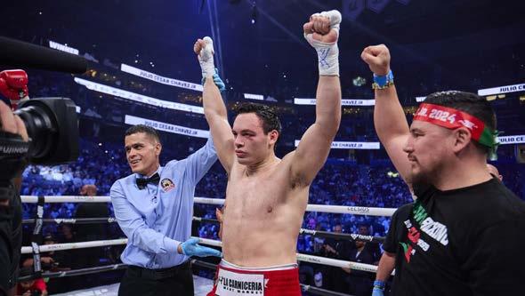 El hijo de Julio César Chávez reapareció, luego de 31 meses para derrotar al artemarcialista, Uriah Hall con puntuaciones de 59-55, 59-55 y 58-56