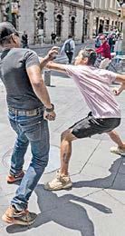 El Centro Histórico de la Ciudad de México fue escenario de una reyerta frente al Antiguo Palacio del Ayuntamiento entre un señor (de oscuro) que se molestó porque un turista extranjero le tomó una fotografía, por lo que comenzó a hostigarlo. El conductor de un bicitaxi (short) intervino en favor del visitante.