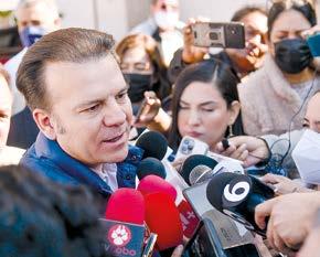 permanente se realizan gestiones, principalmente para cerrar el año, ya que urgen dos mil millones de pesos para pago de aguinaldos y nóminas para antes del 31 de diciembre, “hemos conseguido 350 millones, ahí vamos, nos es tán abriendo puertas y eso se lo agradecemos al presidente López Obrador”, enfatizó el Ejecutivo estatal.