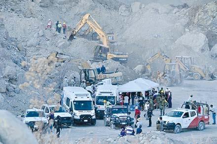 Bomberos y Personal de Protección Civil realizaron ayer labores de rescate en una mina de arena ubicada en la localidad de Teacalco, municipio de Amacuzac, Morelos, donde un trabajador perdió la vida. Foto ‘La Jornada’