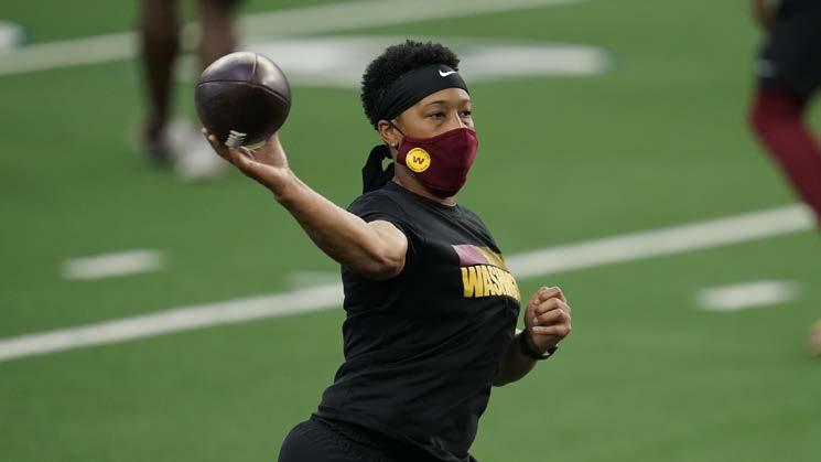 la primera mujer afroamericana en la historia de la NFL en servir como entrenadora de posición principal en 2021 con Washington. Primero fue contratada por Washington en 2020 como pasante, y pasó las últimas tres temporadas como entrenadora asistente de corredores.