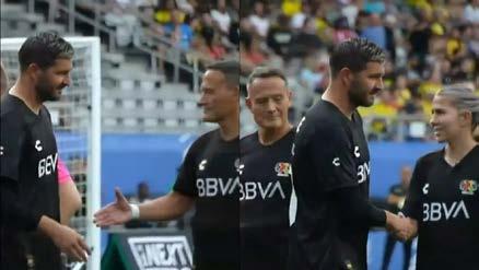 Al ser presentado precisamente para su participación, el atacante de Tigres saludó al cuerpo arbitral, pero cuando tocaba el turno de hacerlo con el “Matador” lo dejó con la mano extendida y siguió su paso para estrechar la de los elementos que estaban en la fila.