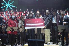 Con más de 180 artistas en escena y la magia de la Navidad en todo su esplendor, el concierto “Más Cerca” logró reunir a cientos de duranguenses, que aportaron un granito de arena para llevar alegría a las niñas y niños de Casa-Hogar del DIF Estatal. “Este es un mensaje de unidad, de que cuando nos sumamos y trabajamos juntos sí se puede”, dijo Arturo Galindo Cabada, titular de la Coordinación Estatal de Protección Civil, al entregar un cheque por 250 mil 150 pesos a la directora operativa de DIF Estatal, Carmen Arrieta Briceño, que a nombre del gobernador Esteban Villegas y su esposa Marisol Rosso agradeció la participación de instituciones y empresarios en este magno evento.