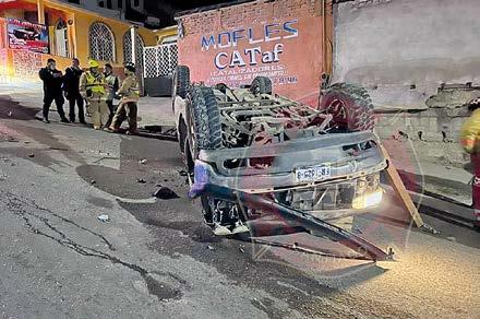 La unidad volcó y quedó con sus cuatro llantas hacia arriba, mientras que los dos ocupantes resultaron con golpes que obli garon a la atención por parte del personal de la Cruz Roja Mexica na.