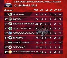 Continúan las acciones de la Liga Universitaria Benito Juárez, con el desarrollo de la jornada número 10 de fase regular, en la cual los Lagartos dieron la nota al derrotar con goliza de 7-0 al Steujed y con ello sumar 3 puntos que lo instalan en la cima de la clasificación general con 24 unidades.