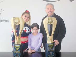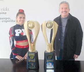 Adriana Garza, porrista en compañía de José López Hol guín, coach, a nombre del equipo Ponys mostraron orgullosamente sus trofeos obtenidos en tierras tapatías en donde enaltecieron el valor de nuestra gente, en este torneo el cual se celebró del 17 al 20 de noviembre