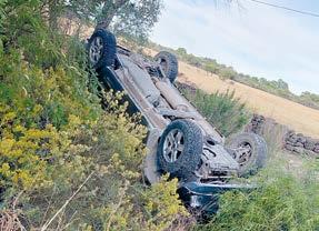 guo al asfalto, dio al menos un par de volteretas y fue frenado por un cerco guardaganado construido con piedra volcánica.