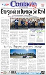 En Durango, es el diario publicado por Editorial Contacto hoy, S. A. de C. V., todas las tardes de lunes a sábado, en la ciudad de Durango, Dgo., México. Fundado el 30 de enero de 1998. Impreso en Talleres, Oficinas y Redacción ubicados en: Blvd. Armando del Castillo Franco No. 820, Fracc. La Loma, C.P. 34058. Tels: 128-0717 y 128-0647. Correo electrónico: contactohoy@prodigy.net.mx. Web: www.contactohoy.com.mx